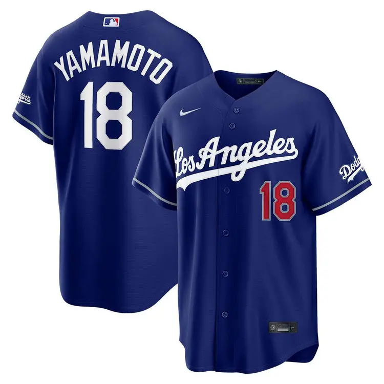 Elevate your game day wardrobe with this premium Yoshinobu Yamamoto royal blue alternate jersey. Crafted for durability and style, this piece features high-quality stitched lettering and numbering that captures the professional look of the diamond. The lightweight, breathable fabric ensures maximum comfort whether you are cheering from the stands or out in the city. Designed with a classic athletic cut and a sleek button-down front, this jersey celebrates the Japanese pitching sensation in bold Los Angeles colors. Perfect for dedicated fans, this meticulously detailed apparel offers a timeless way to support your favorite ace during the 2026 season and beyond.