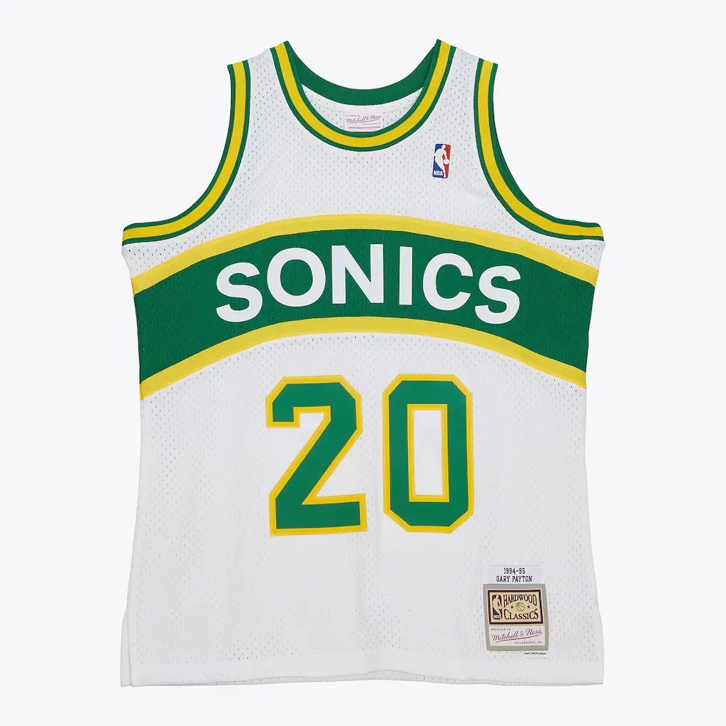 Relive the golden era of Seattle basketball with this premium 1994-95 home jersey honoring the legendary Gary Payton. This classic white garment features high-quality stitched lettering and numbers, capturing the iconic forest green and yellow color scheme of the era. Crafted from breathable, durable mesh fabric, it offers a comfortable fit perfect for game days or casual street style. Every detail reflects the elite craftsmanship of the nineties, showcasing the bold SuperSonics wordmark across the chest. Celebrate the defensive prowess of The Glove with this timeless piece of sports history, designed for fans who value durability and vintage aesthetics.