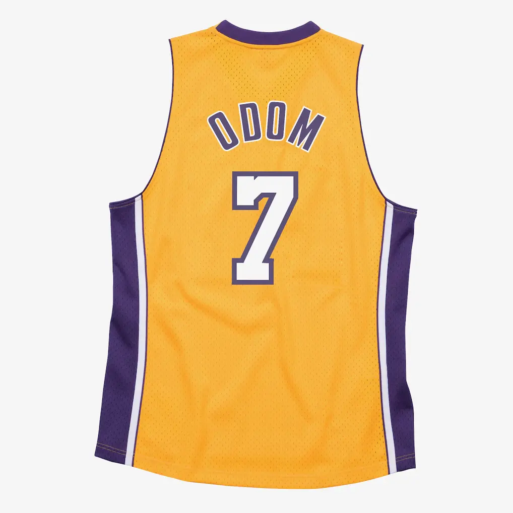 Pay tribute to a pivotal era of purple and gold dominance with this premium 2009-10 Lamar Odom Los Angeles Lakers jersey. This gold edition captures the vibrant energy of a championship-winning season, featuring high-quality construction and meticulous attention to detail. Every name, number, and team logo is precision-stitched, ensuring a durable and professional finish that stands out in any collection. Designed with breathable mesh fabric, it offers superior comfort for game days or casual wear. Celebrate the versatile skill set of one of the franchise’s most beloved sixth men with this timeless piece of basketball history. It is a must-have for dedicated fans wanting to honor the legacy of a true versatile star during the height of the team’s back-to-back title run.