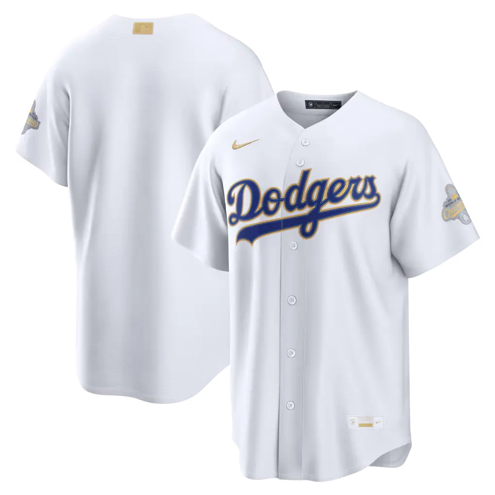 Celebrate baseball history with this premium Los Angeles Dodgers 2026 Gold Collection Stadium Jersey. This crisp white piece features meticulous stitching that brings the team identity to life with elevated durability and texture. Designed for the ultimate fan experience, it incorporates metallic gold accents that honor championship excellence and storied traditions. The breathable, high-quality fabric ensures maximum comfort whether you are at the ballpark or on the street. With its tailored fit and detailed embroidery, this jersey stands as a sophisticated tribute to the boys in blue, offering a timeless look that captures the prestige of the franchise.