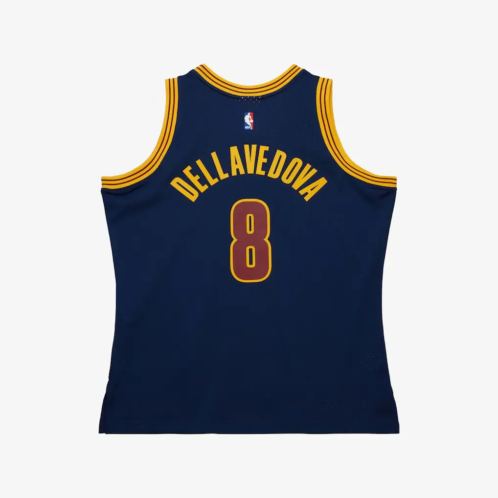 Celebrate a golden era of Cleveland basketball with this premium Matthew Dellavedova alternate jersey from the historic 2015-16 championship season. This deep navy garment features meticulously stitched letters and numbers, ensuring a high-quality finish that honors the relentless hustle of the fan-favorite guard. Designed with breathable, performance-focused mesh fabric, the jersey captures the distinct look worn during the team’s legendary title run. Gold and wine trim accents provide a classic contrast against the dark base, making it a standout piece for any dedicated supporter. Whether you are at the arena or styling a vintage sporty look, this durable piece offers a timeless tribute to a beloved era in Cleveland sports history.