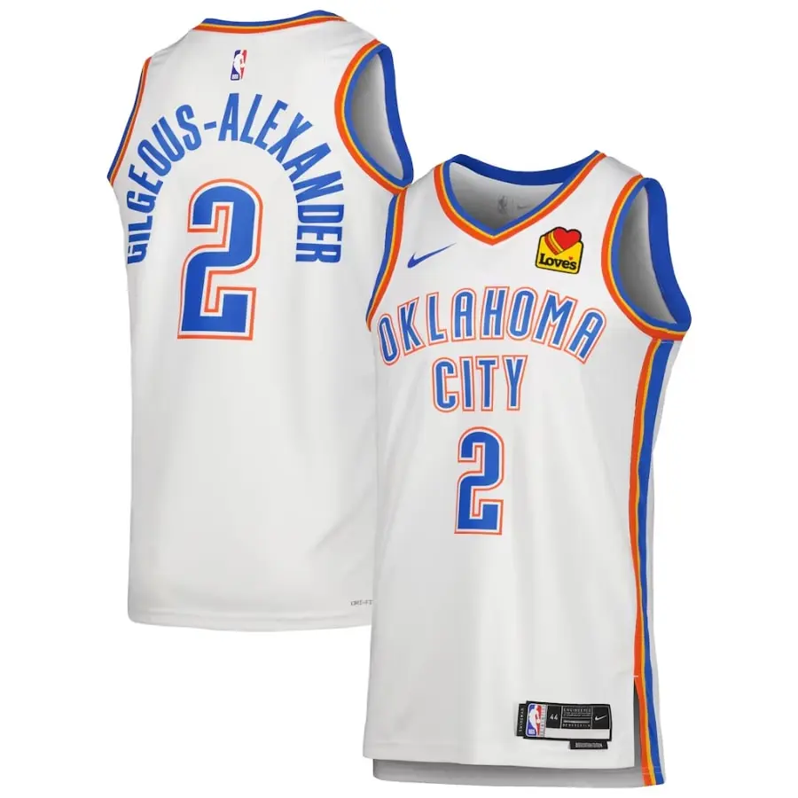 Pay tribute to the rising superstar of Oklahoma City with this premium Shai Gilgeous-Alexander #2 jersey. Designed for dedicated Thunder fans, this white uniform features high-quality construction with fully stitched letters and numbers for a classic, long-lasting look. The breathable, lightweight fabric ensures maximum comfort whether you are hitting the court or cheering from the stands. With its crisp white colorway and bold blue and orange accents, this piece captures the energy of the OKC roster. Elevate your sports apparel collection with this durable, detailed jersey that highlights the talent of one of the league’s most dynamic guards.